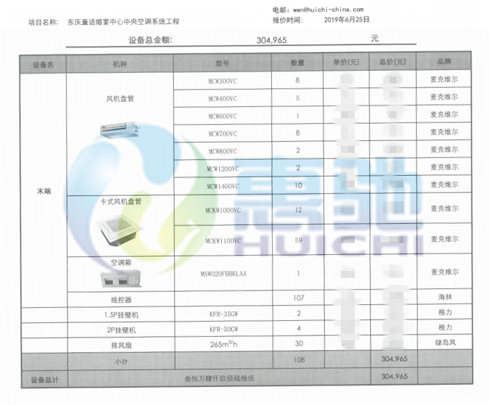項目內(nèi)容:麥克維爾風(fēng)機盤管設(shè)備安裝調(diào)試工程