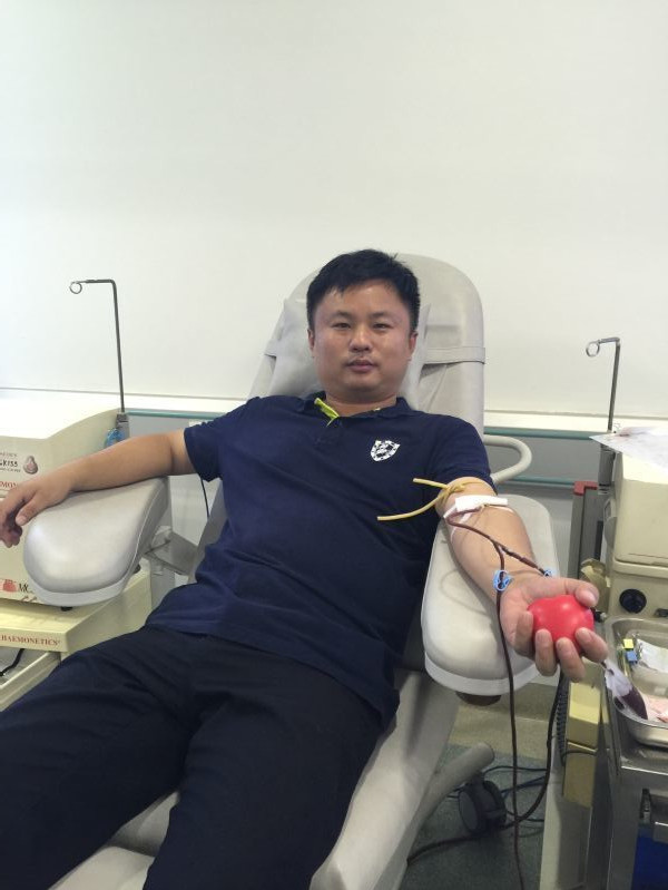余德軍先生是上海惠馳空調電器有限公司南京分公司的總經理,也是中心條件保障科黃愛明科長的好友。當他從好友那里得知最近因天氣炎熱、獻血市民銳 減、血液庫存下降的消息后,立即表示要到血液中心獻血,盡自己的一份微薄之力。7月21日上午,余總經理來到中心成分機采室,成功捐獻了300ml全血。 獻完血后他說:“這是我人生的第一次獻血,這次經歷非常寶貴,我要用我的實際行動,動員和鼓勵我的員工與我一起參加無償獻血活動,用自己的熱血為患者獻上 一份愛心,幫助他們早日恢復健康!”樸實的語言,詮釋著大愛與奉獻!